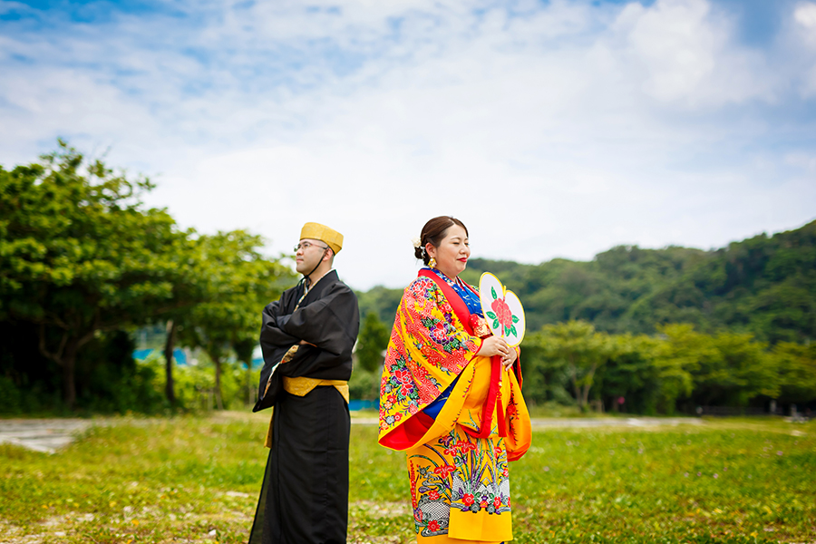 フォートカノアではドレス着用のウェディングフォトは撮影できませんが、琉装に限り前撮り(または後撮り)をお受けしています。